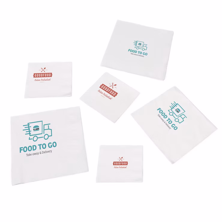 Onze bedrukte servetten zijn beschikbaar in 3 formaten (opengevouwen: 240, 330 en 400 mm). Je hebt daarbij zelf de keuze in hoeveel kleuren en in welk formaat je logo verschijnt. Of kies voor een 3-laags servet voor een luxueus gevoel.
